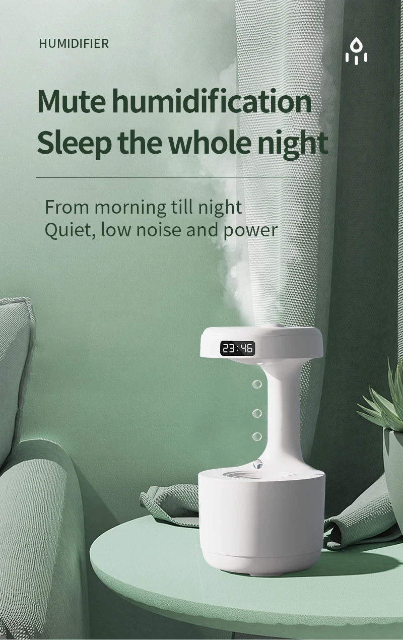 Tabletop Humidifier: 800ml Large water tank USB humidifier, antigravity water droplet provides cleaner air, which can steadily and efficiently dispenses the for your space.